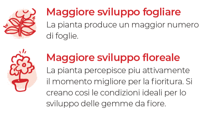 Le piante trasformano la luce in energia da utilizzare durante i principali processi di crescita, come lo sviluppo vegetativo e la fioritura.