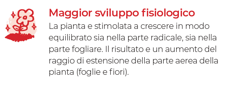 La pianta si nutre principalmente attraverso le radici e, solo in minima parte, attraverso l’apparato fogliare. Maggiore volume e capillarità delle radici permettono un’esplorazione più profonda del terreno e dunque un maggiore assorbimento degli elementi nutritivi.