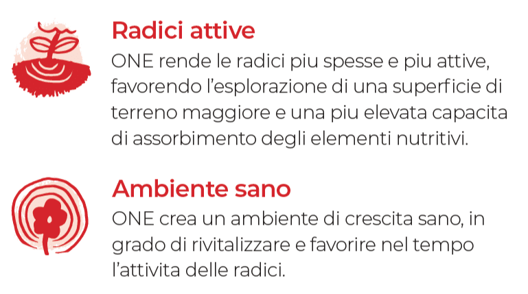 NutriOne incrementa lo sviluppo del capilizio radicale, l’insieme delle radici assorbenti e delle radici di recente formazione che sono notevolmente più ricettive.