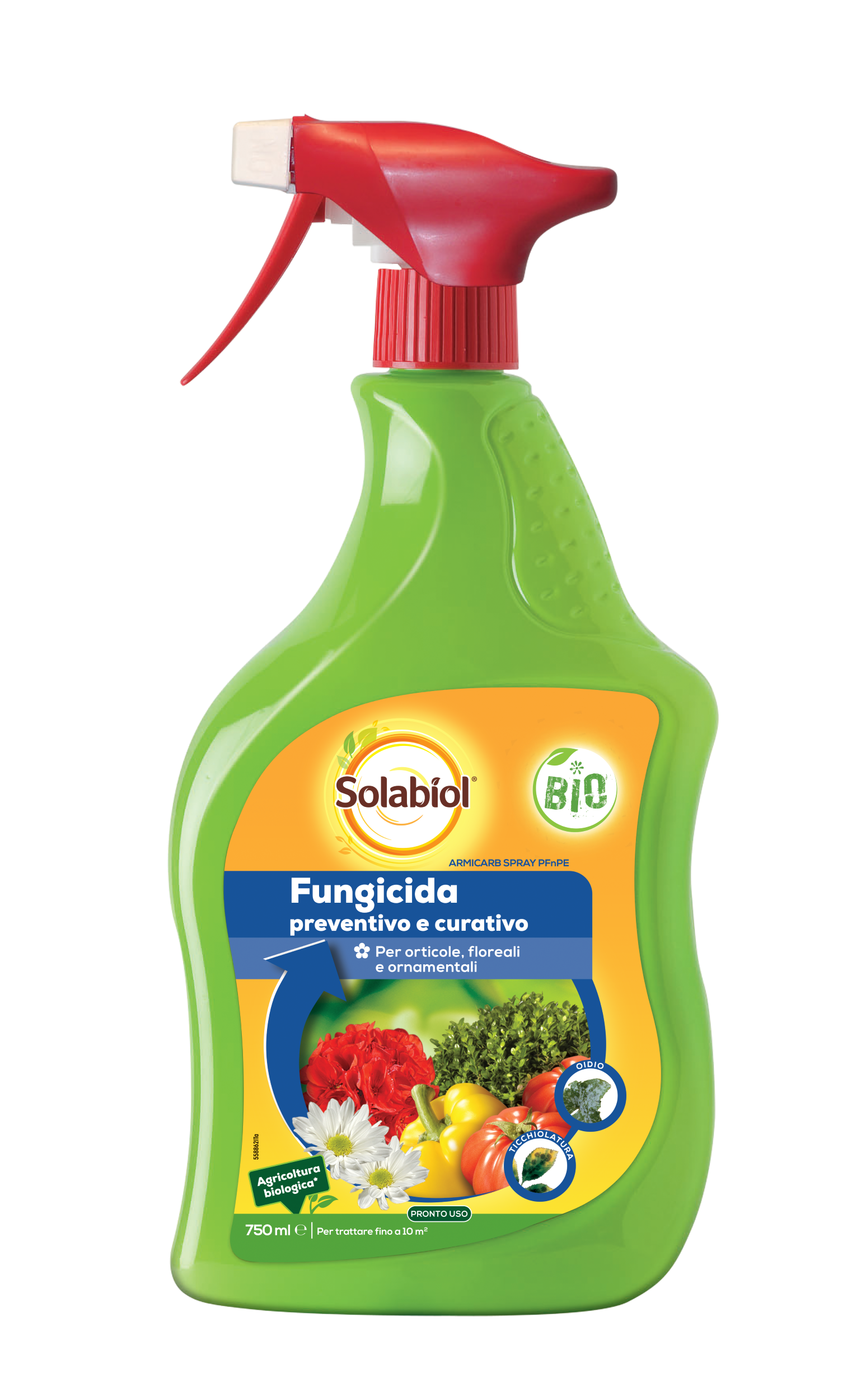 Armicarb AL PFnPE è un fungicida pronto all’uso di contatto a base di bicarbonato di potassio in cristalli solubile con attività preventiva e curativa contro le maggiori malattie fungine quali ticchiolatura e oidio. Armicarb AL PFnPE ha un modo d’azione multitarget che provoca lo scoppio e il disseccamento e collasso totale funghi patogeni. Armicarb