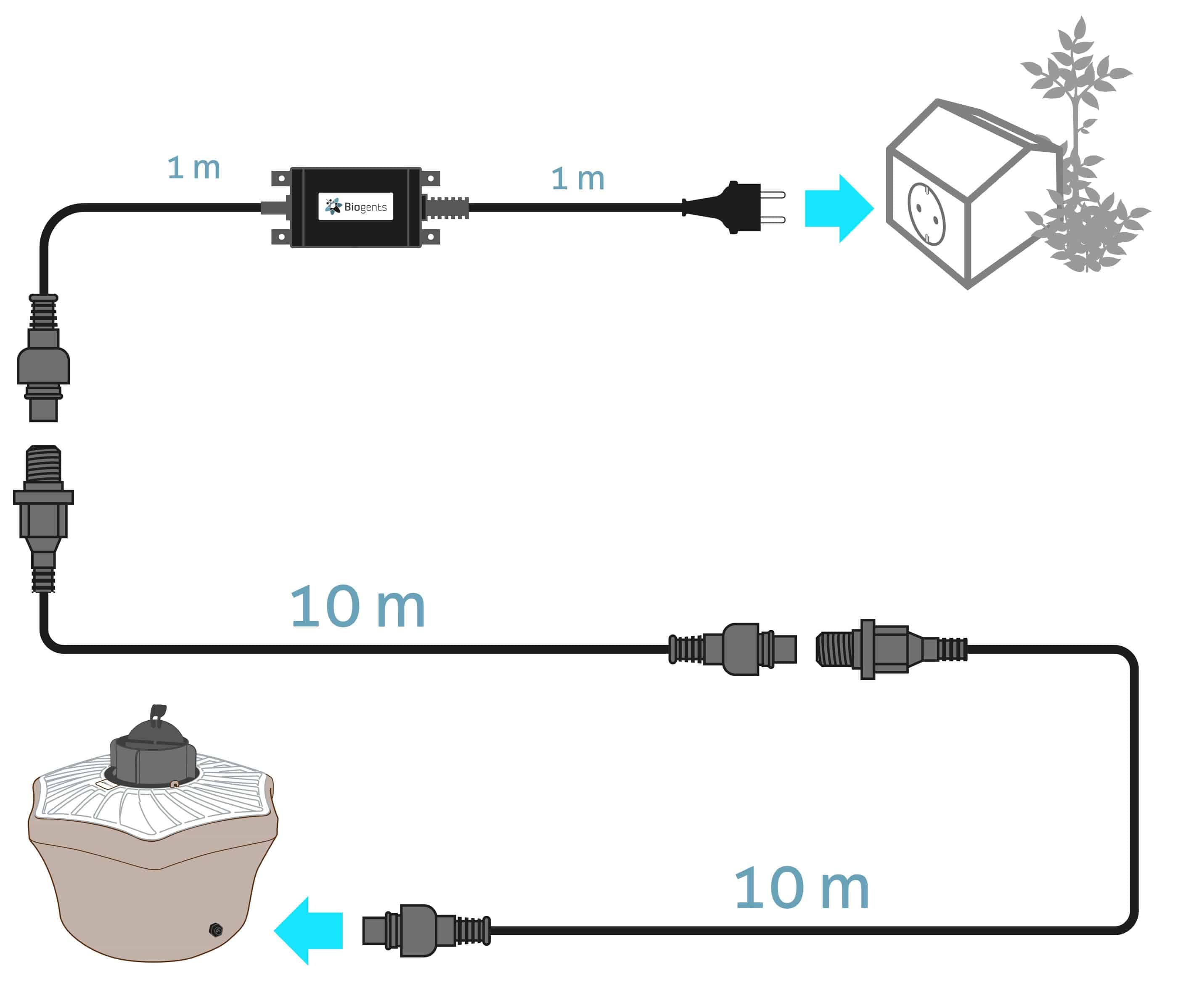 Prolunga di 10m da usare in combinazione alla trappola per zanzare BG Mosquitaire, funzionante a corrente.