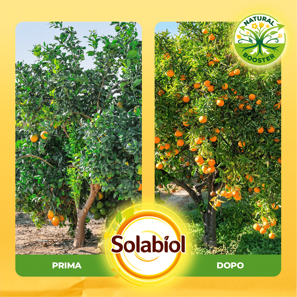 Solabiol liquido Agrumi e Piante Mediterranee è il concime ideale per agrumi in vaso (limone, arancio, mandarino, lime) e piante mediterranee come cycas, bouganville e oleandro.
