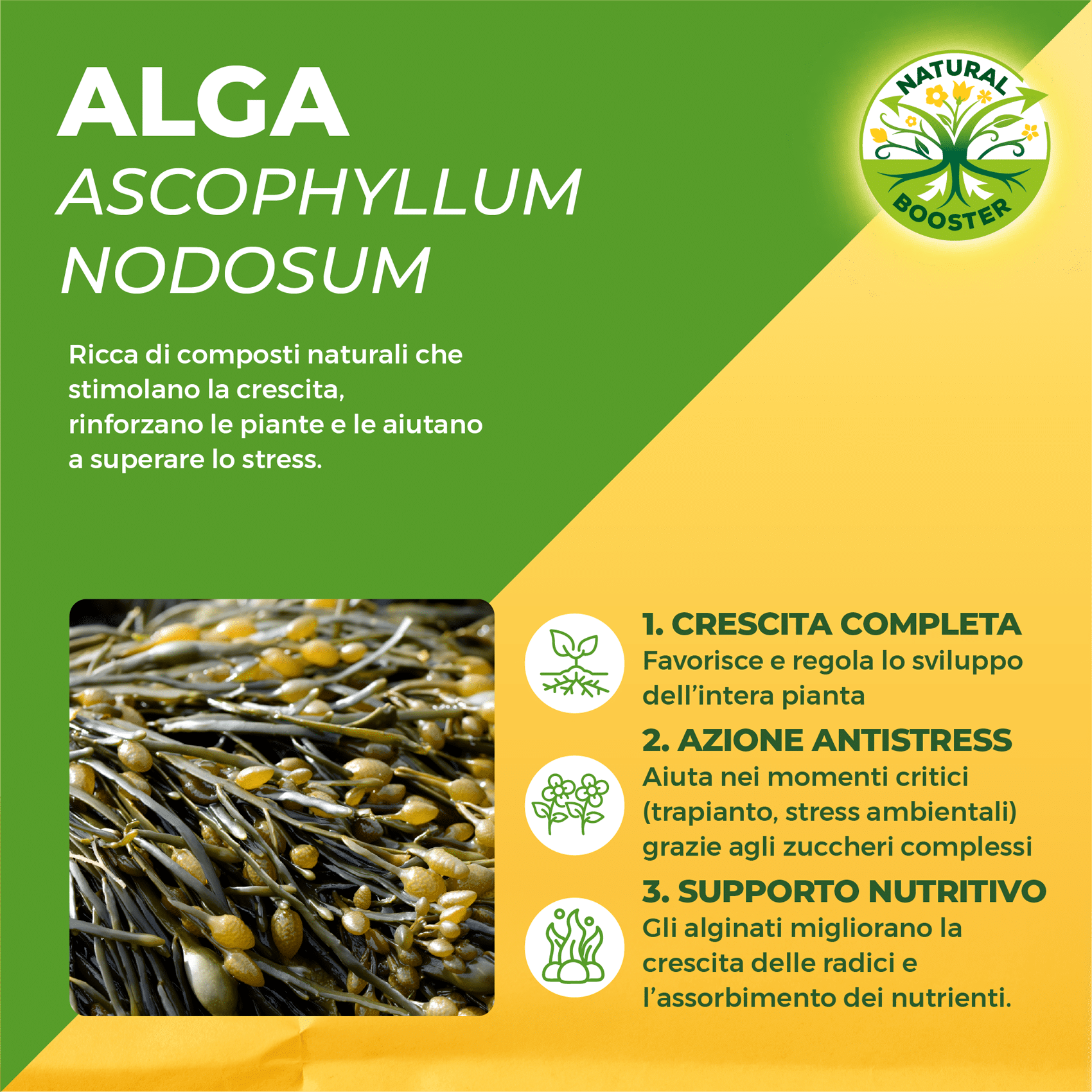 - Aumentano le difese naturali della pianta, inducendo la produzione naturale di LAMINARINE