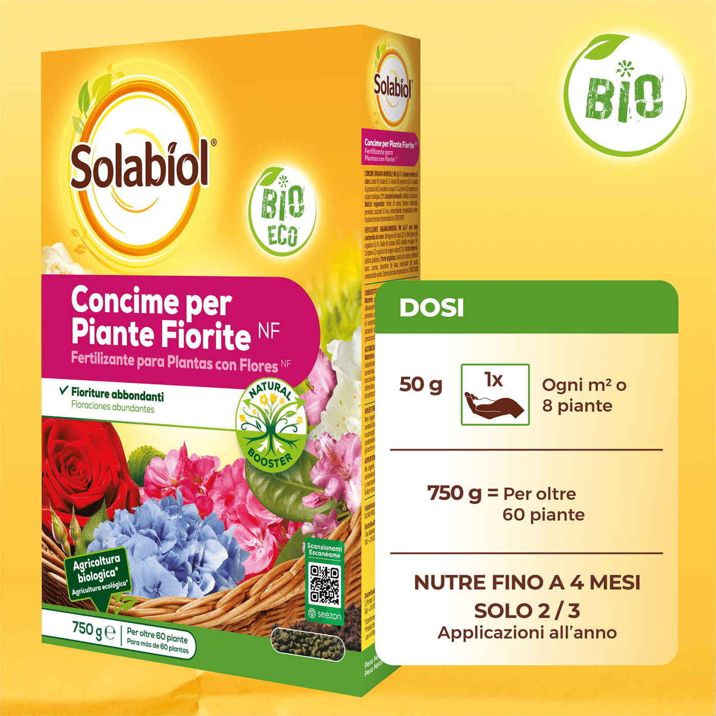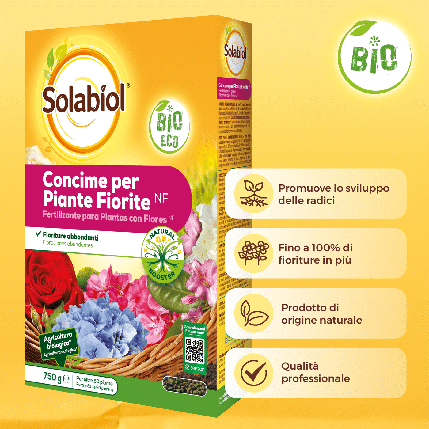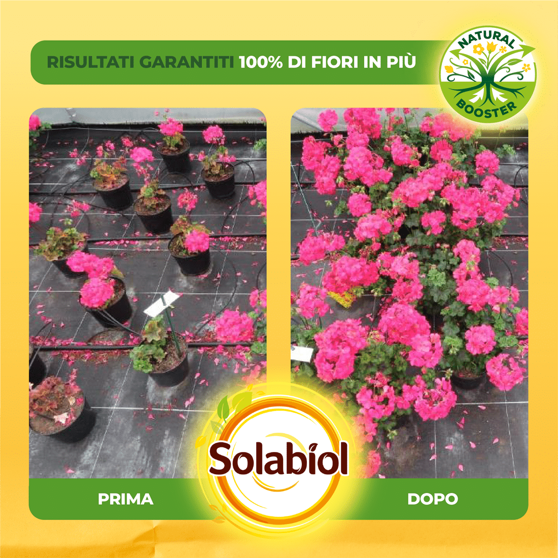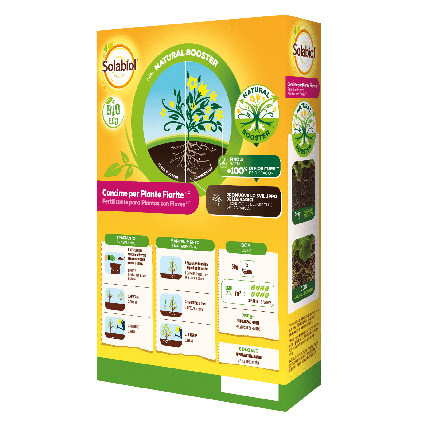 La speciale tecnologia Natural Booster promuove un maggior sviluppo dell’apparato radicale della pianta fino a farlo raddoppiare. Grazie ad un apparato radicale più sviluppato la pianta può arrivare a produrre fino al doppio delle fioriture. Una pianta con radici più forti sarà anche più resitente all’attacco di insetti e parassiti.