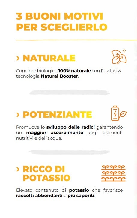 • Elevato contenuto di potassio che favorisce una migliore qualità dei frutti