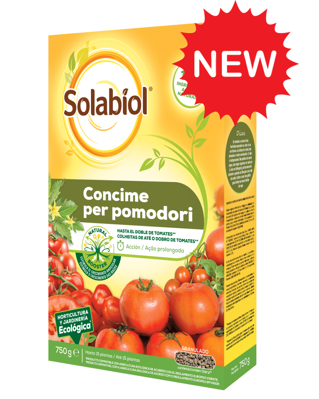 Solabiol Pomodori è un concime granulare 100% di origine naturale con l’esclusiva tecnologia Natural Booster, che promuove un maggior sviluppo dell’apparato radicale della pianta, favorendo così la crescita di piante sane e rigogliose.