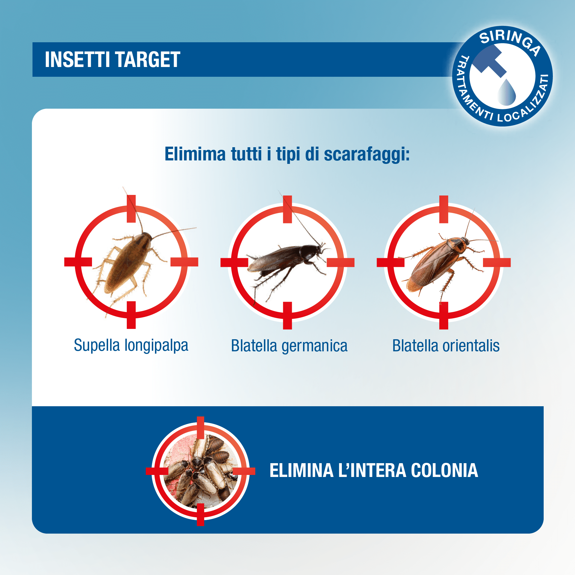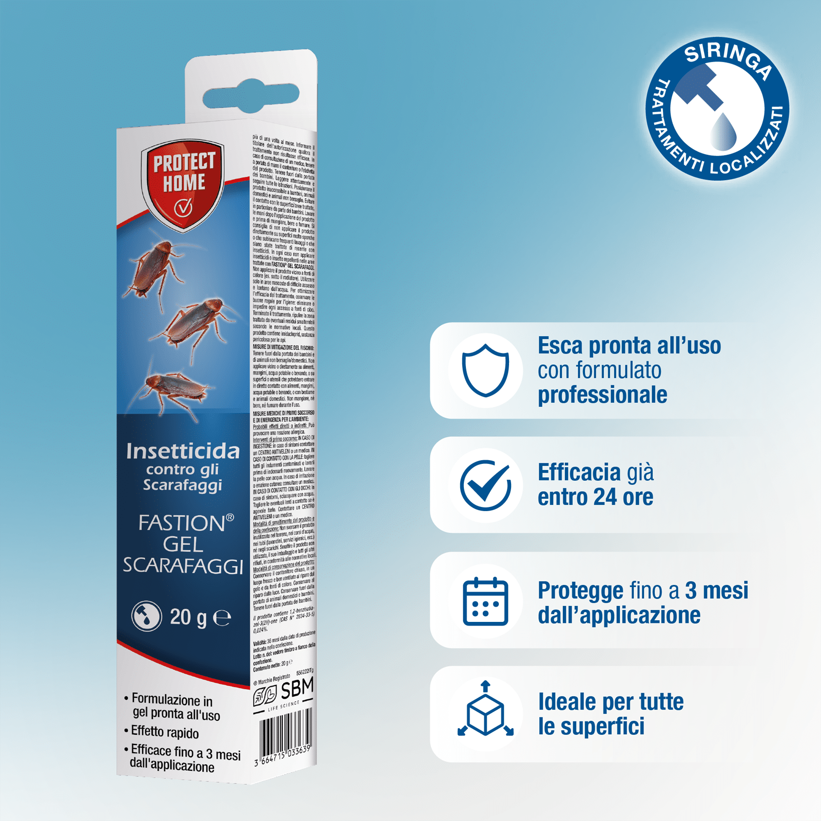 Ho prima acquistato l'escavape per scarafaggi quella in plastica, poi ho riempito oltre quella che danno loro i fori con questo prodotto punto ho debellato per sempre ogni traccia di blatta o scarafaggio per sempre! Le esche possono rimanere anche in qualche angolo della casa per sicurezza.
