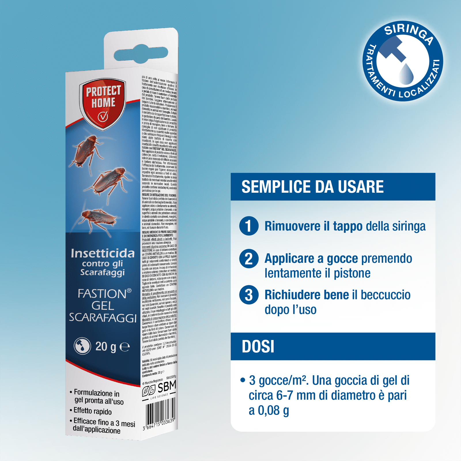 Eccellente una goccia ogni 50 cm intorno alla porta o nei battiscopa in legno,in qualsiasi buco delle mattonelle o muro sotto i lavelli dove esce lo scarico ,tubo del gas ,ecc.Ripeyere dopo 1 settimana