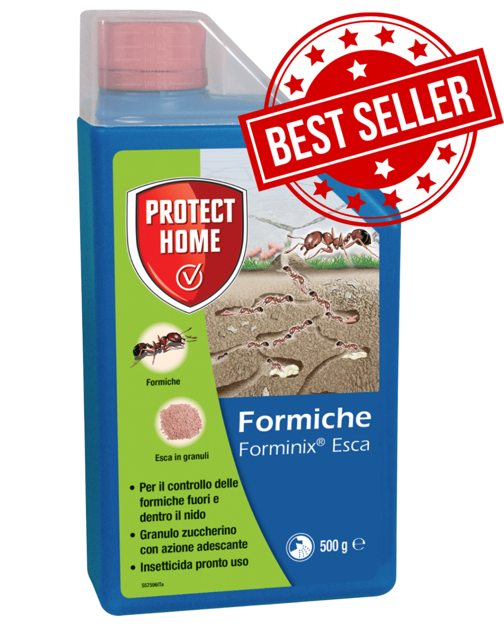 Forminix Esca Formiche si impiega per la lotta contro le formiche ed in particolare contro le formiche dei giardini che infestano gli ambienti domestici, i terrazzi, i balconi e tutte le superfici circostanti alle abitazioni. L’esca è costituita da Imidacloprid (principio attivo insetticida) e da un attrattivo alimentare a base di zucchero che induce le formiche operaie a portare il prodotto nel formicaio e a utilizzarlo come alimento per l’intero nido. Con l’ingestione si ha ben presto la totale distruzione del formicaio. Forminix Esca Formiche è disponibile in confezioni provviste di tappo salva bimbo e misurino dosatore.