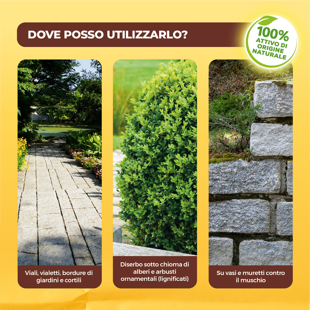 - elimina anche il muschio da vialetti e vasi