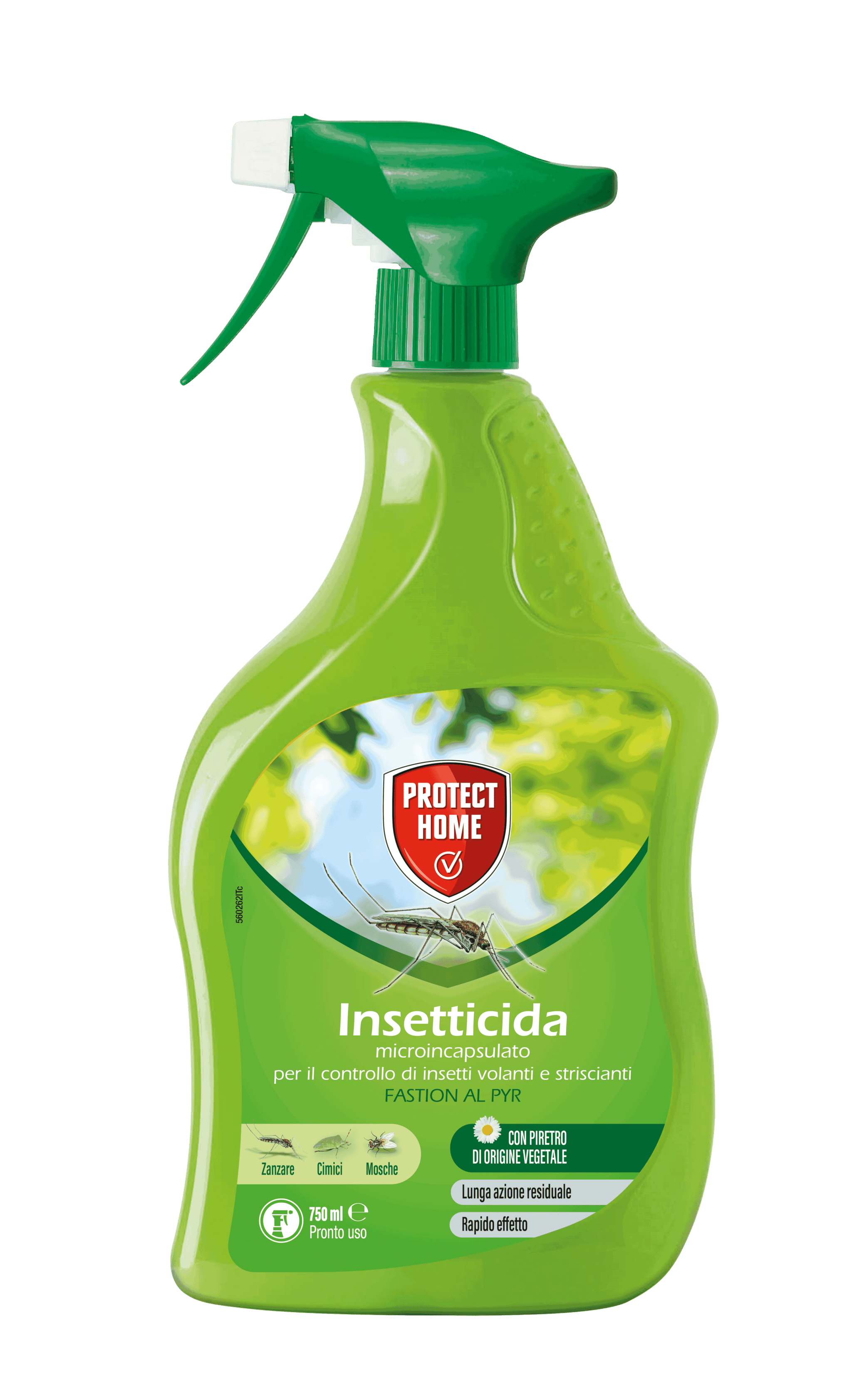 Insetticida liquido pronto all’uso per il controllo di insetti volanti e striscianti come: Zanzara, Mosche, Scarafaggi, Formiche, Cimici, ecc a base di piretro naturale.
