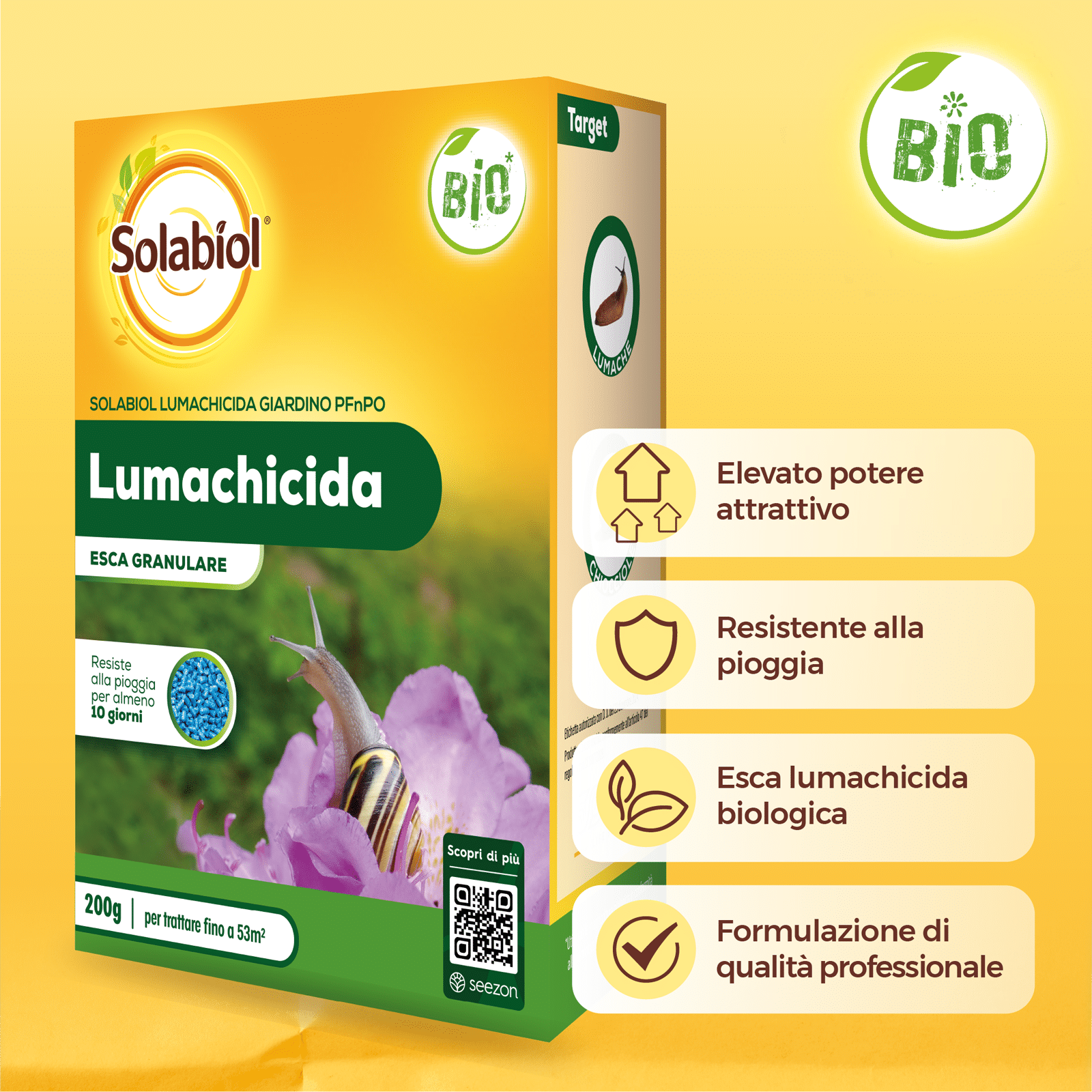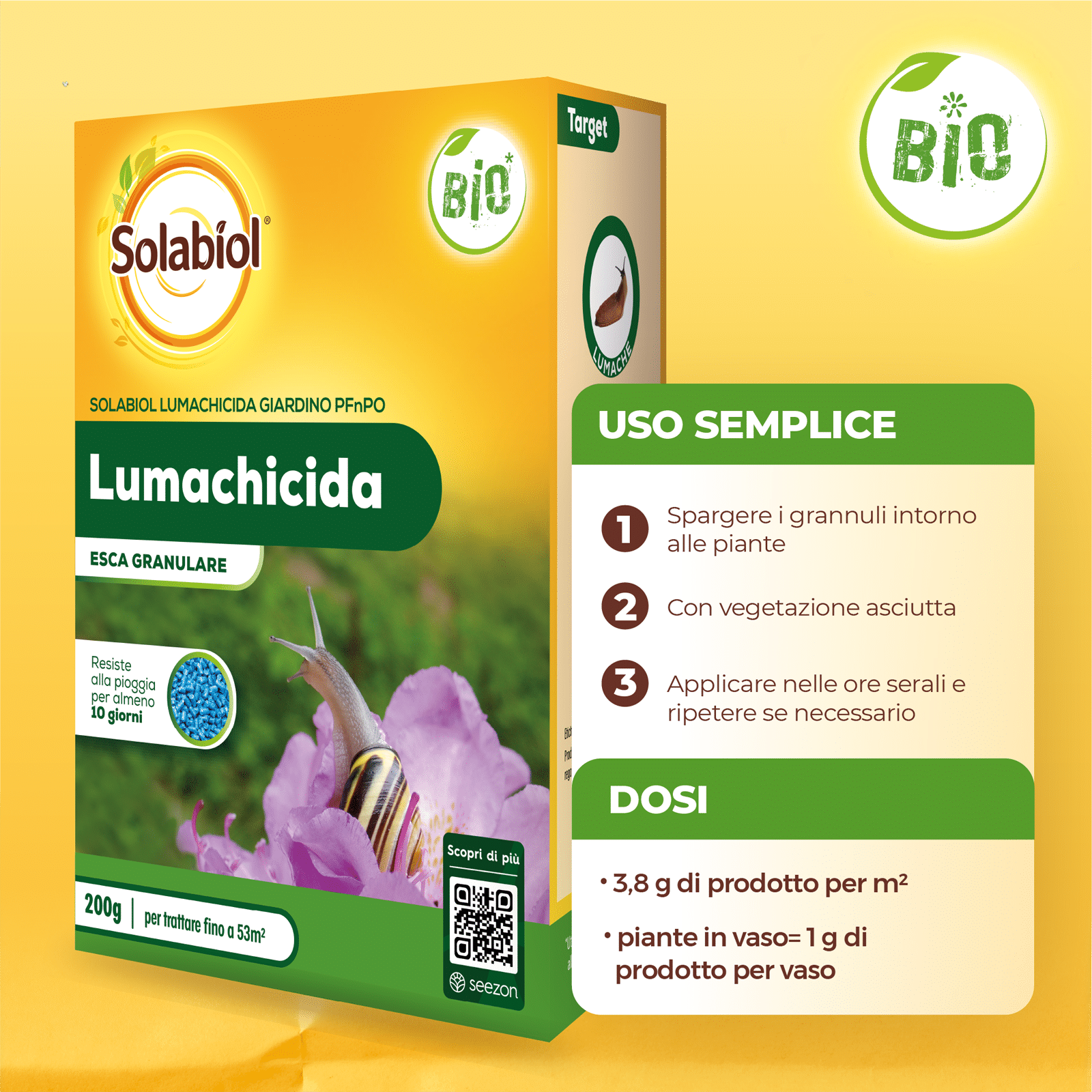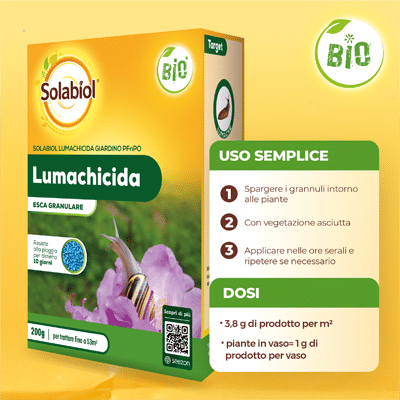 Solabiol Lumachicida Giardino PFnPO è un’esca granulare a base di fosfato ferrico con elevata resistenza alla pioggia per piante floreali e ornamentali.