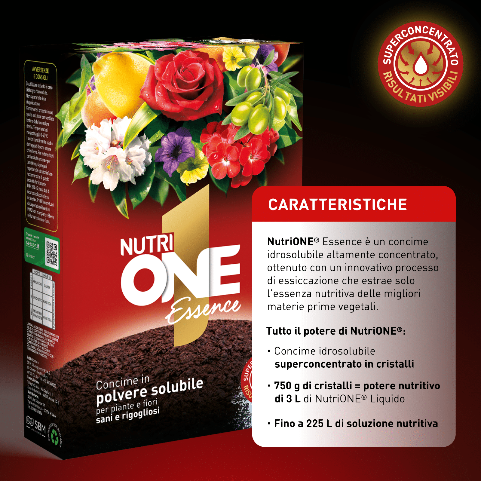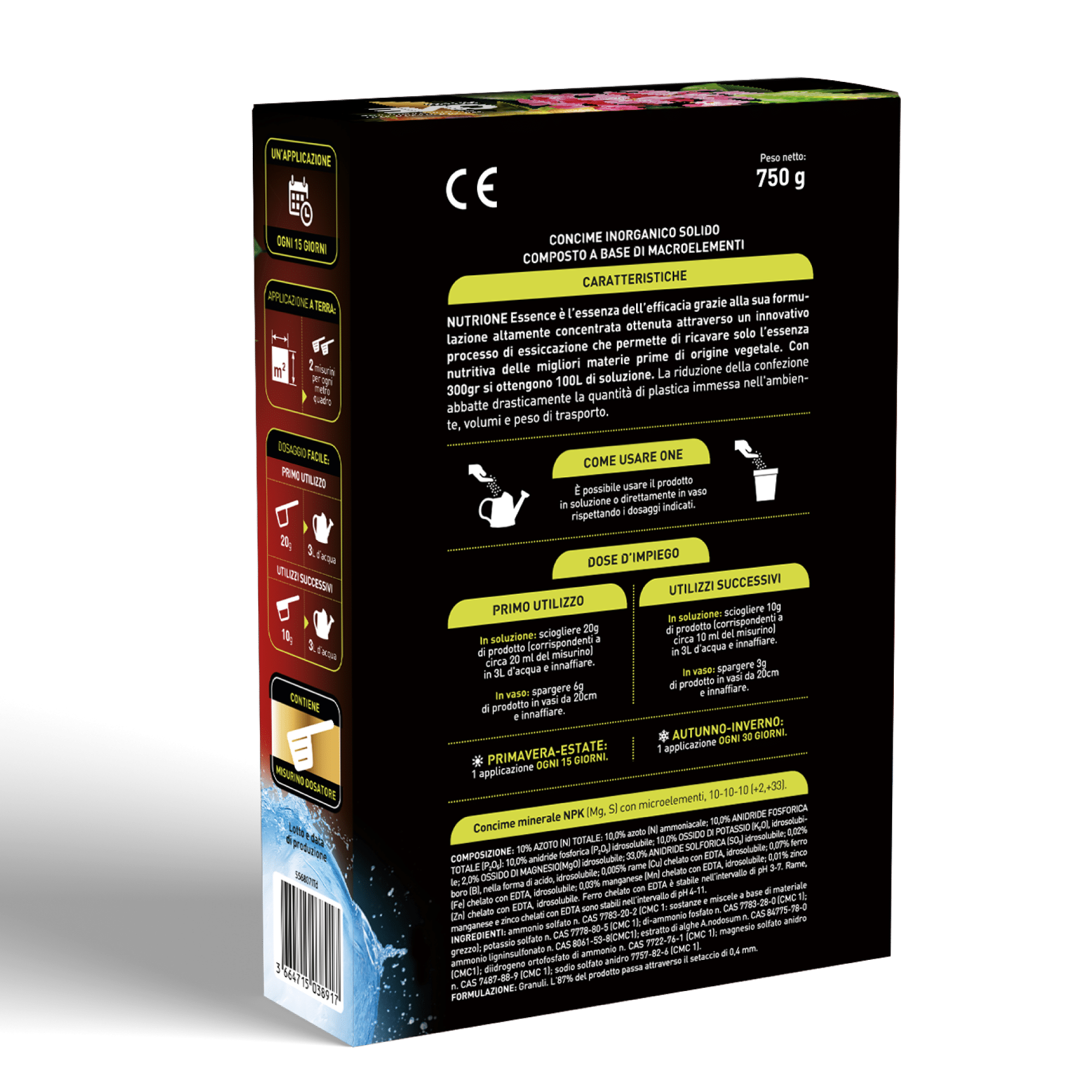 Nutrione Essence è l’essenza dell’efficacia: una nuova formulazione altamente concentrata in cristalli idrosolubili, ottenuta attraverso un innovativo processo di essiccazione e concentrazione della materia prima che garantisce la massima efficacia nutritiva del formulato. Il prodotto è indicato per la concimazione di ogni tipo di pianta e fiore.