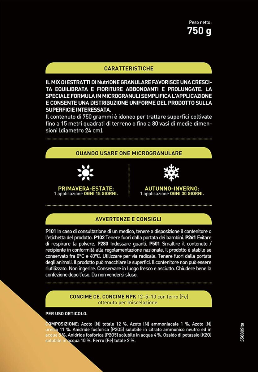 Concime che utilizzo da anni con eccellenti risultati per le piane in terrazza. Costa più degli altri ma è più "naturale", ha meno impatto ambientale, è a base di alghe e le mie 42 vasche in terrazza grazie a ONE garantiscono alle piante una crescita rigogliosa e sostenibile.Consigliato senza riserva alcuna!