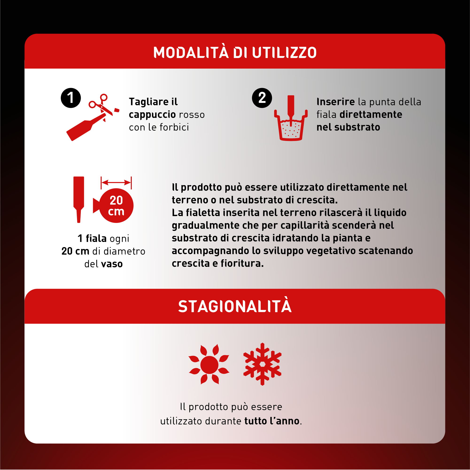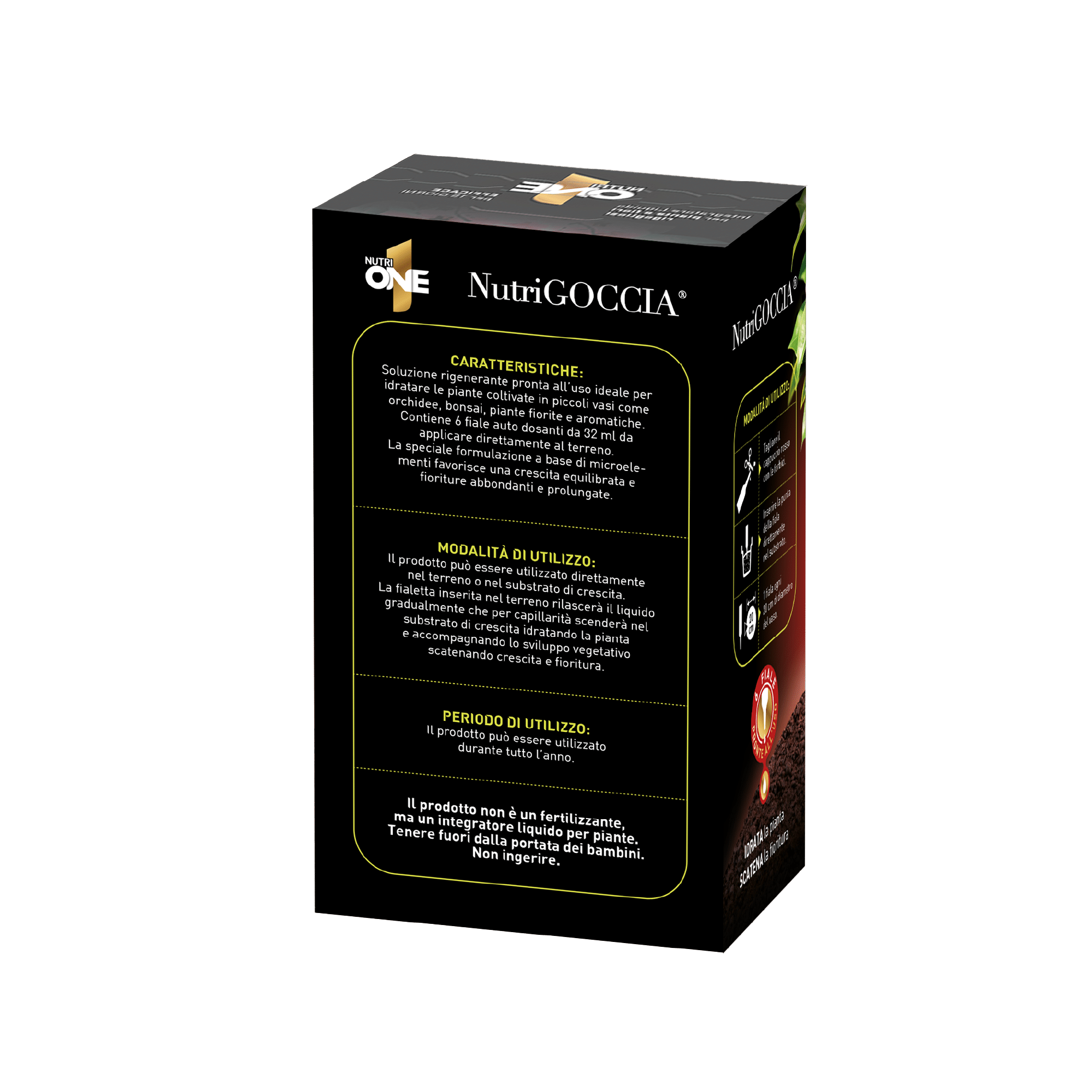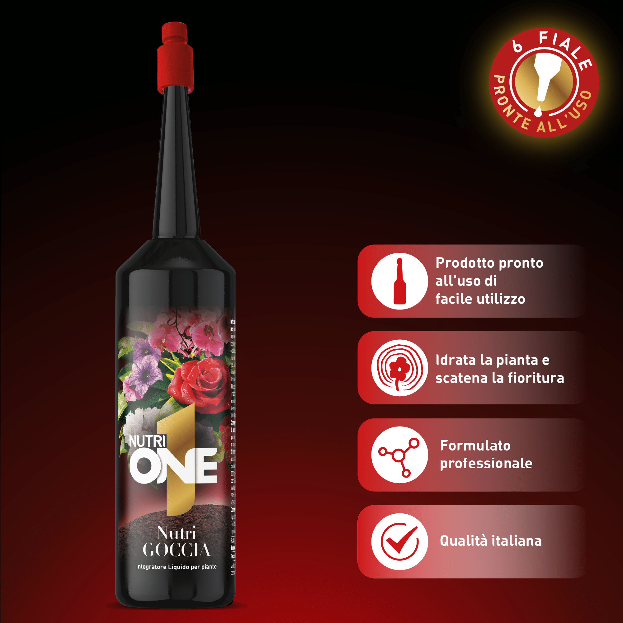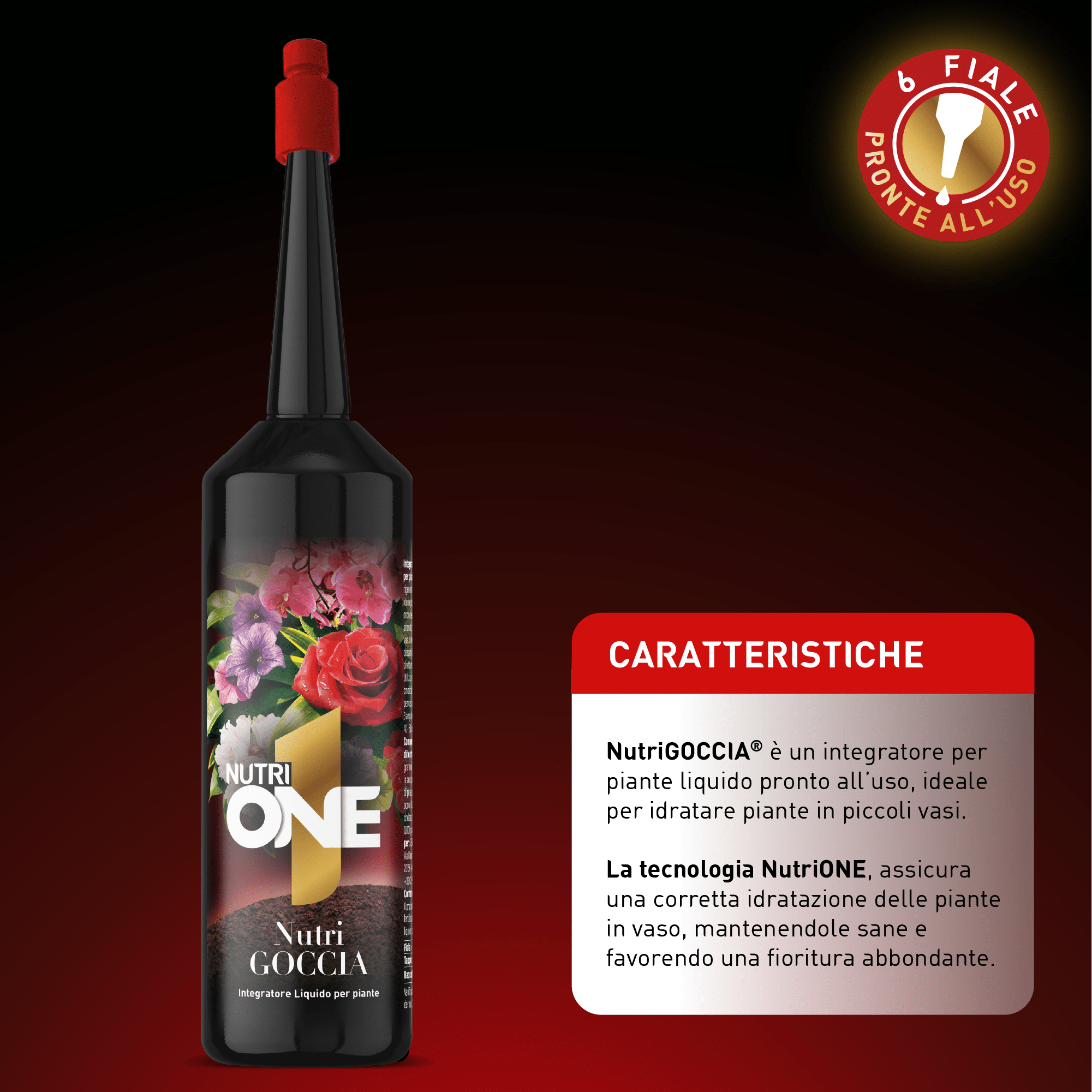 Nutrigoccia è un formulato ricco di sostanze nutritive e idratanti. Sviluppato con tecnologia NutriONE® permette una corretta idratazione della pianta in vaso, mantenendo la pianta sana e scatenando la fioritura.