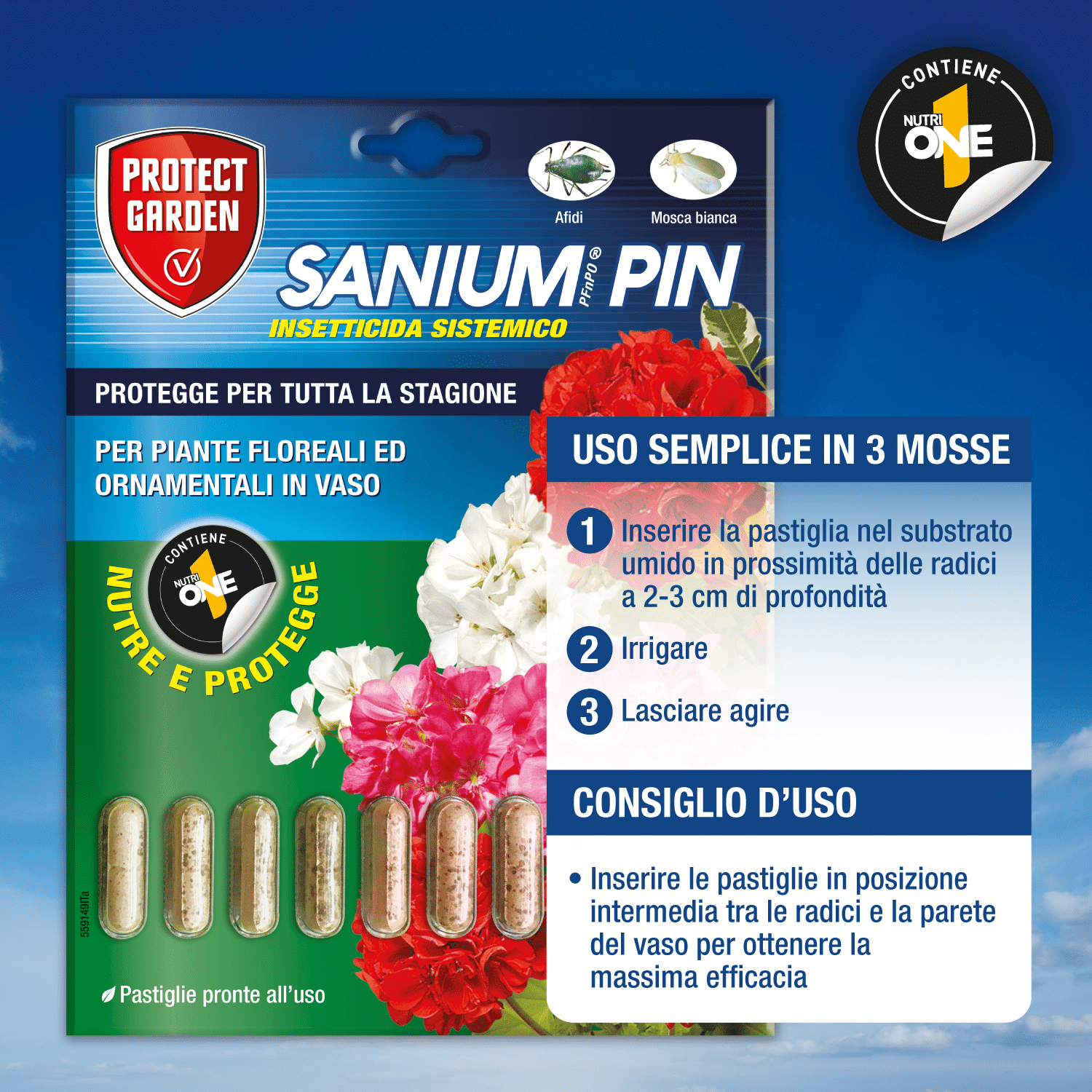Ho acquistato questo insetticida per debellare dei fastidiosi afidi che si erano insediati sui miei gerani, colonizzandoli. Ho le fioriere lunghe, quelle da balcone e ne ho messo 3 capsule ciascuna (circa 1 per pianta, per intenderci) poi ho innaffiato e continuato a dare acqua normalmente. In circa una settimana gli insettini erano spariti del tutto e le piante sono rinvigorite e rifiorite.Apprezzo la presenza integrata del concime One, ma sono contenta che sia in quantità limitata perchè lo trovo troppo "forte" per le mie piante, nel senso che hanno uno scatto di crescita notevole, ma poi tendono a bruciarsi dopo l'estate quindi per la concimazione uso altro (Zapi o altre marche)