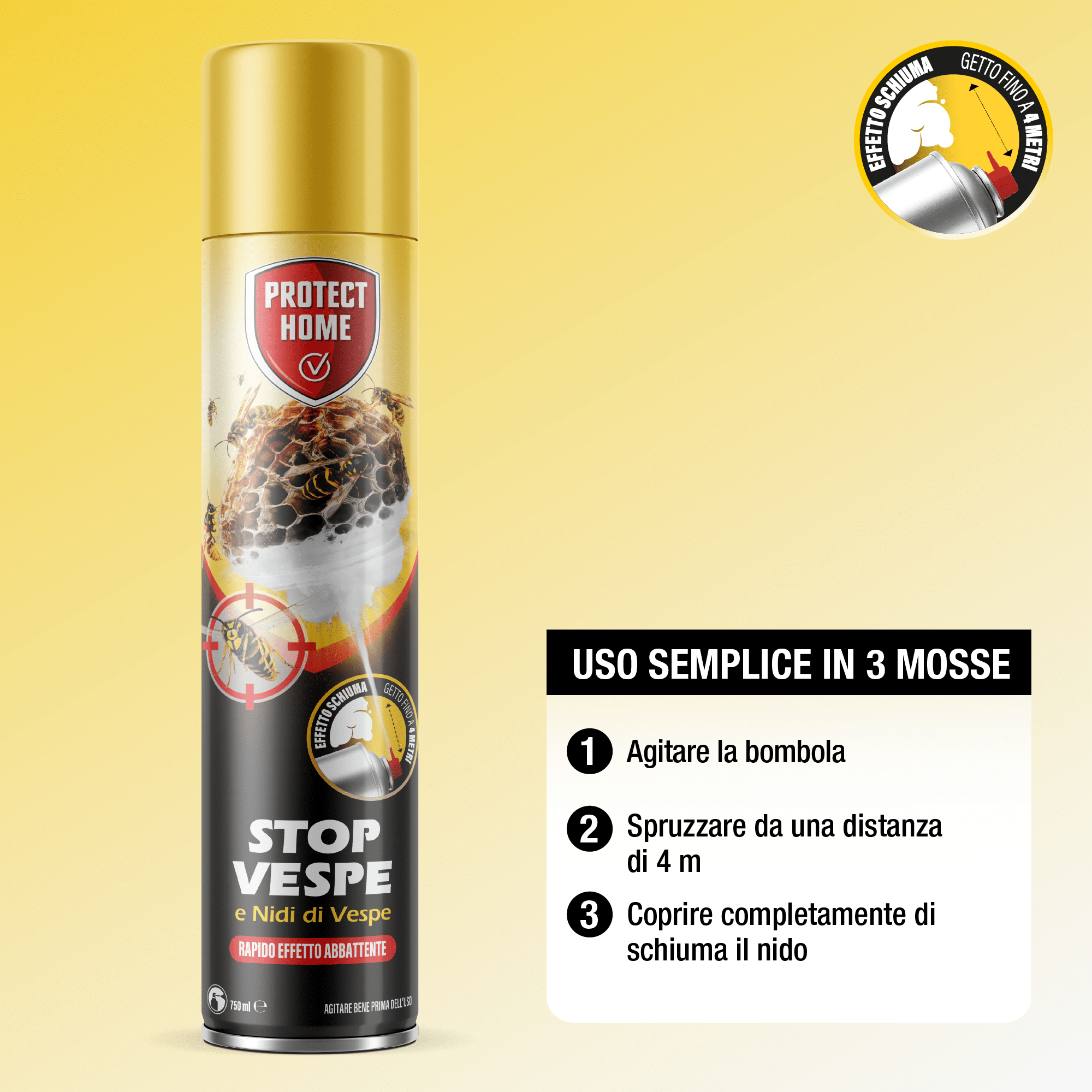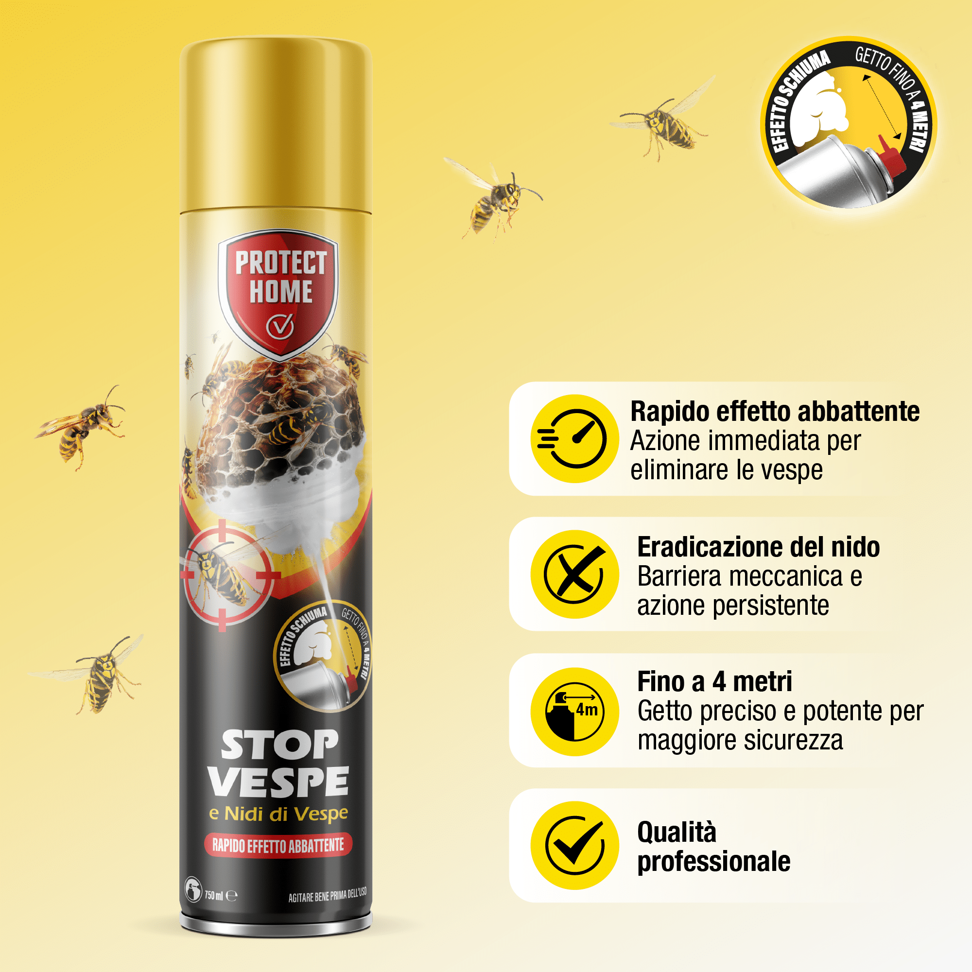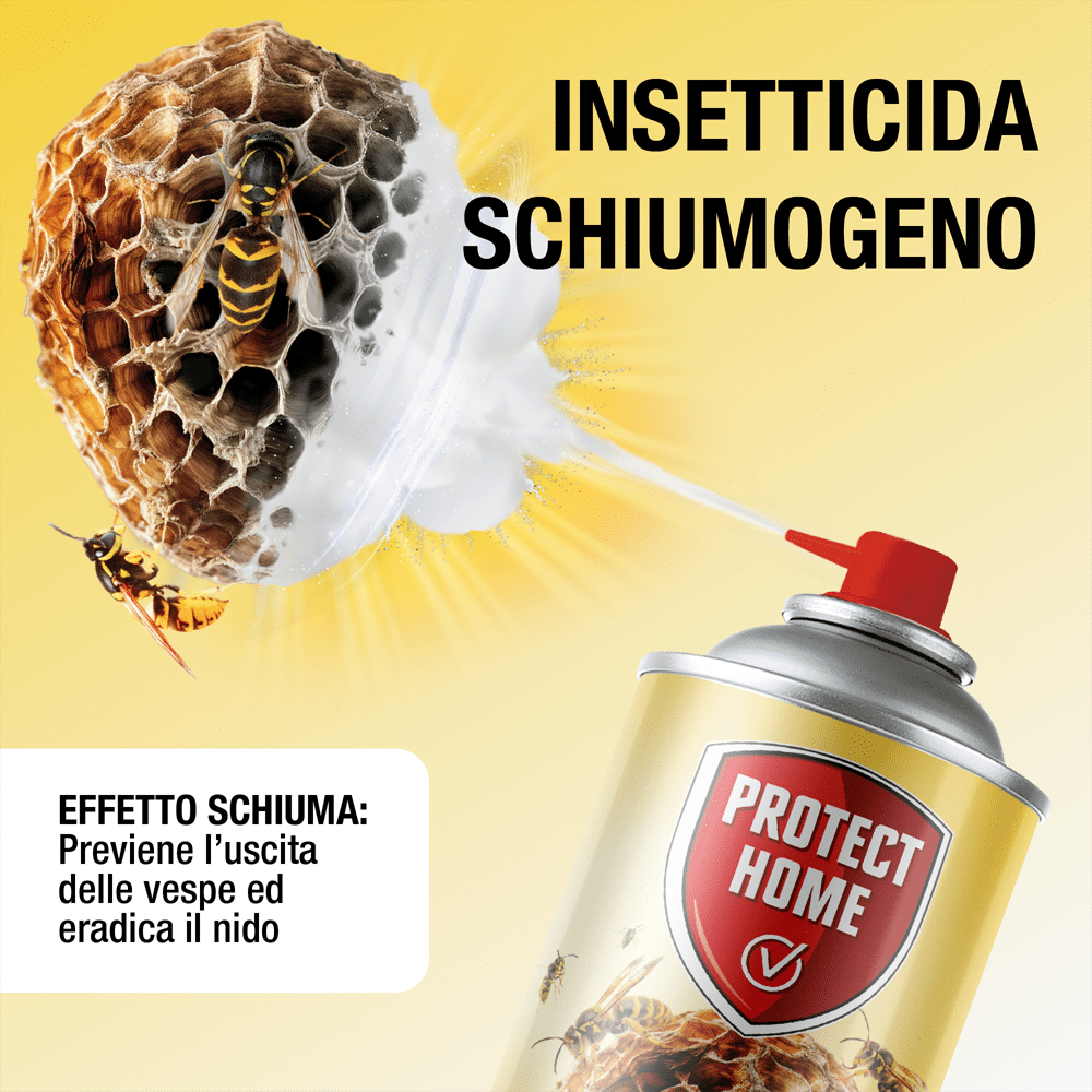 Protect Home vespe e nidi di vespe è un insetticida schiumogeno con rapida azione abbattente ed azione eradicante nei confronti delle vespe e dei loro nidi.