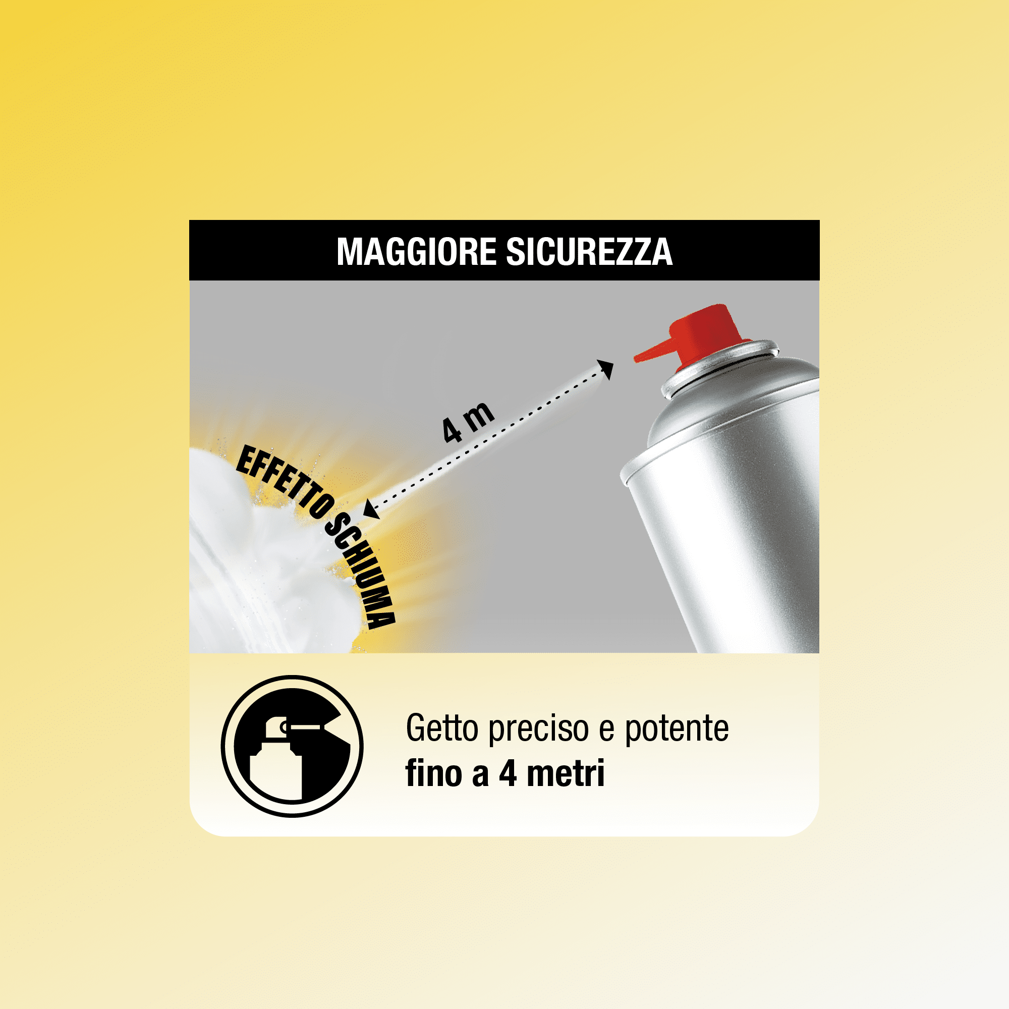 La bombola è dotato di una speciale valvola a getto che permette di operare ad una distanza di circa 4 metri dal nido, in modo sicuro.