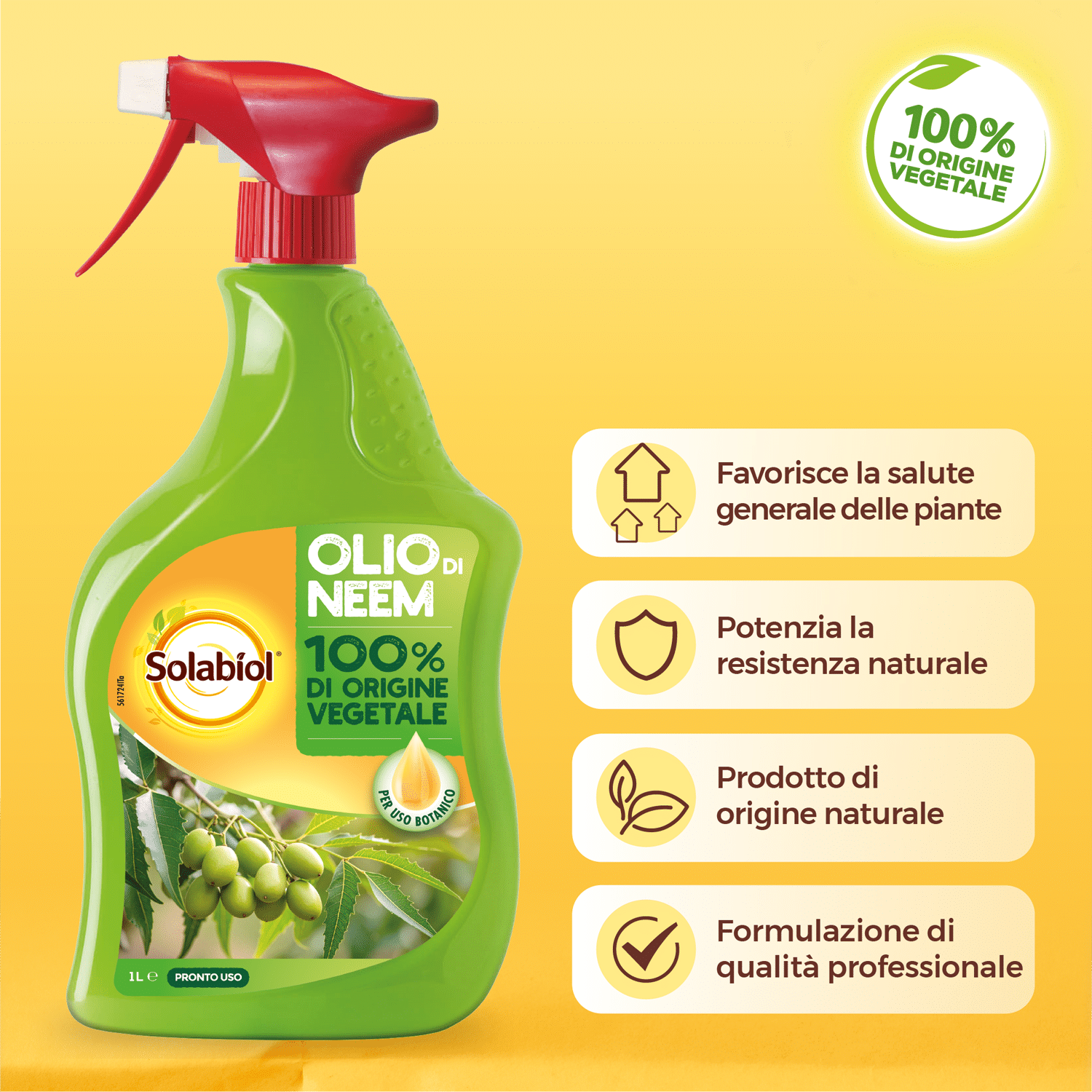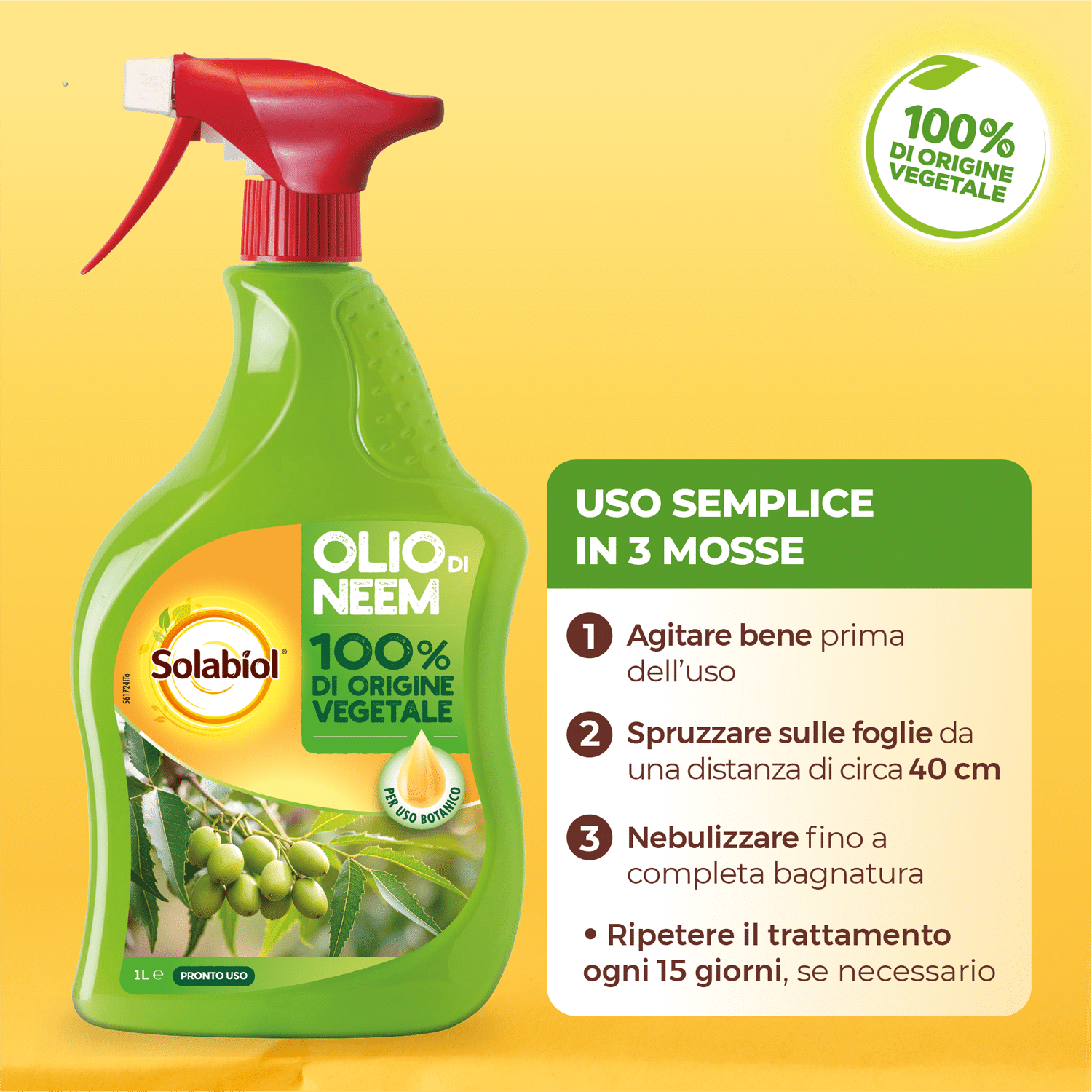 La miscela pronta all’uso a base di Olio di Neem è un prodotto 100% di origine vegetale appositamente formulato per uso botanico.