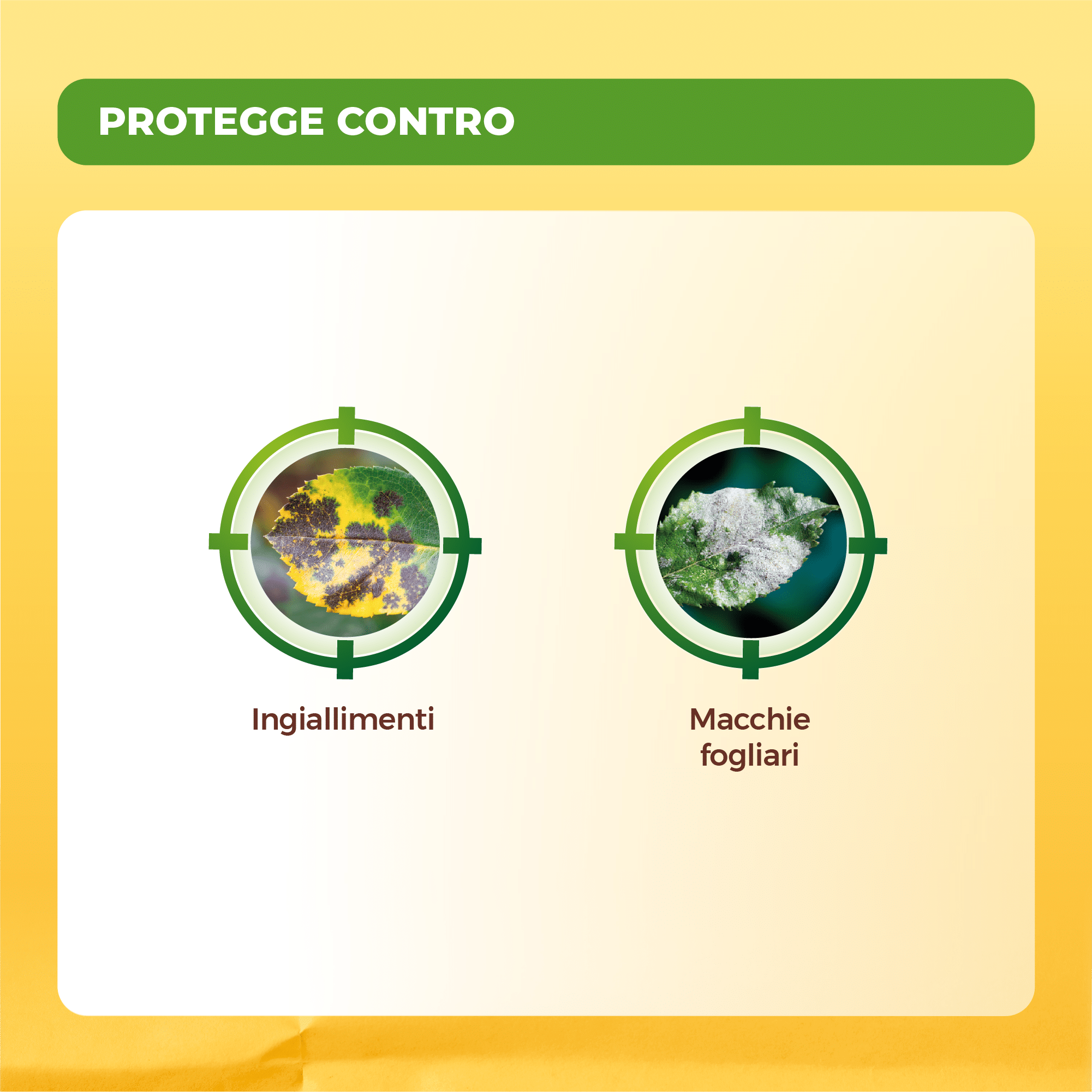 Ideale per trattamenti su piante per curare ingiallimenti e le macchie fogliari.