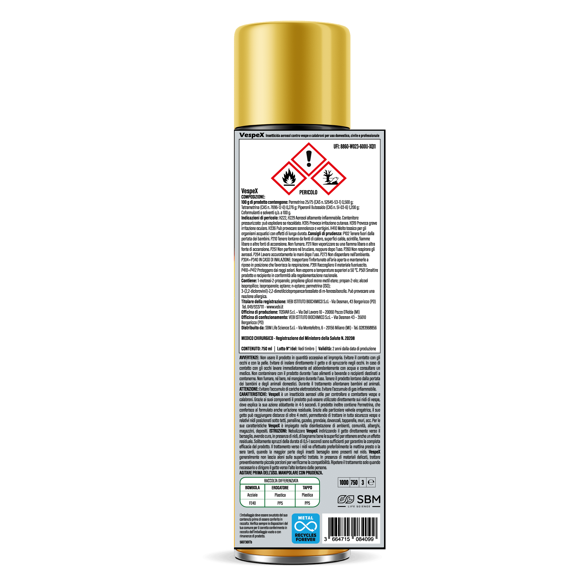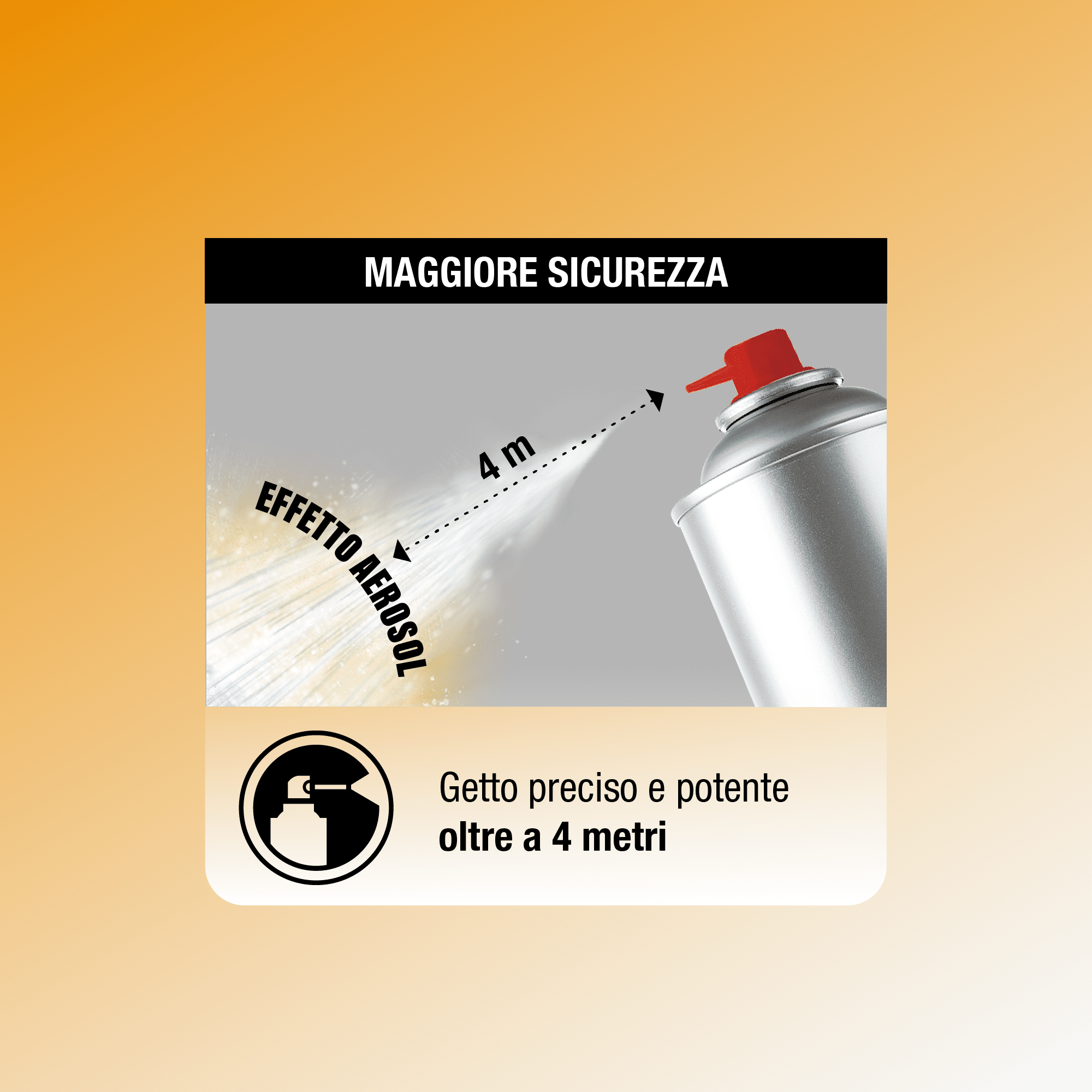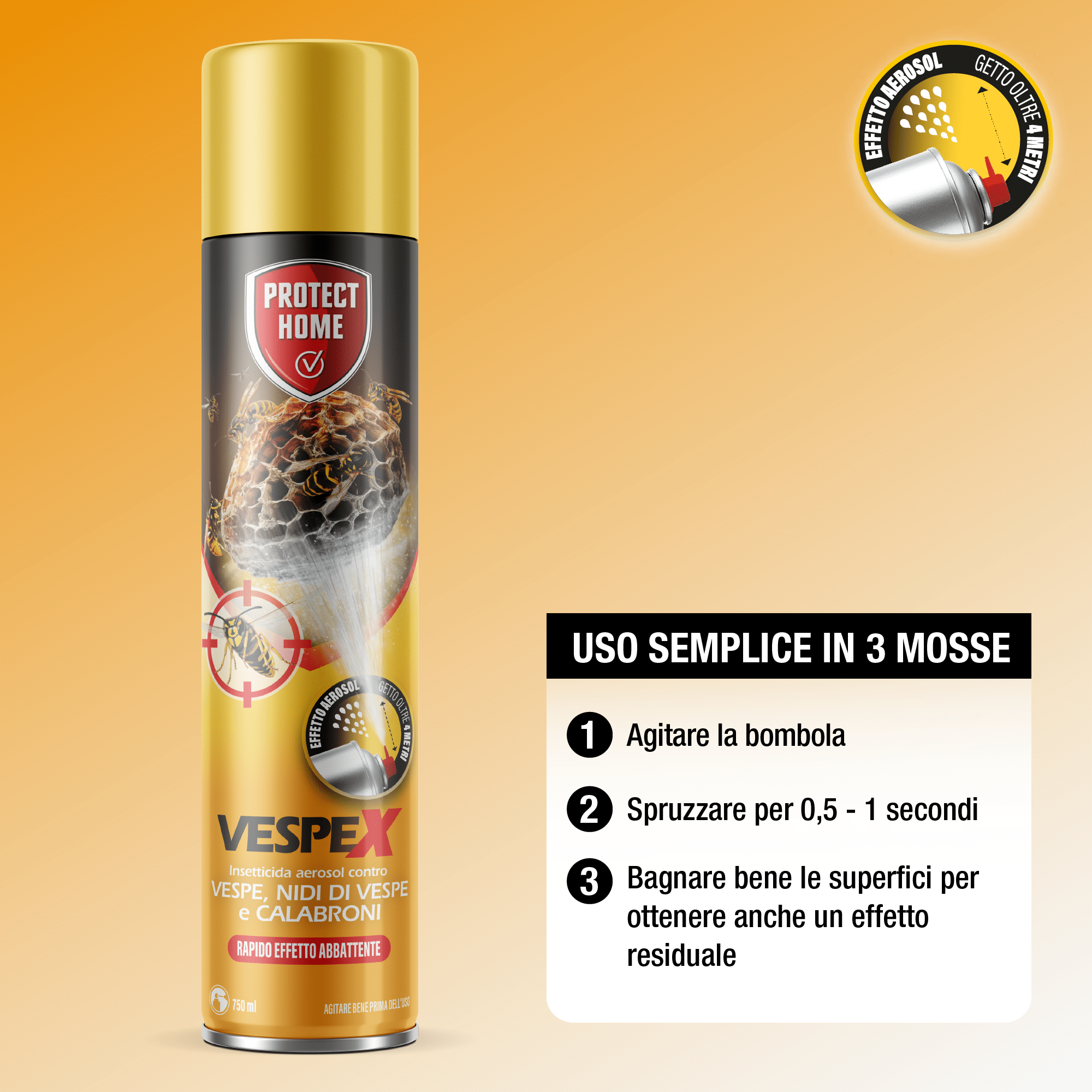 E’ un insetticida aerosol per controllare e combattere vespe e calabroni. Può essere utilizzato direttamente sui nidi di vespe, dove esplica la sua azione abbattente in 4-5 secondi. Possiede anche un’azione residuale. Il suo getto oltre 4 metri, permette di trattare in tutta sicurezza.